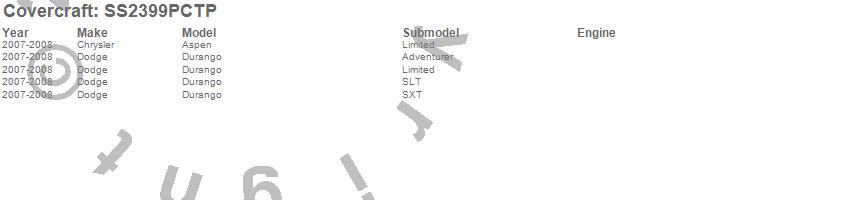 Below is an abbreviated list of applications for the SeatSaver Custom Seat Cover.Aspen, Durango, Chrysler, Dodge, 2008, 2007