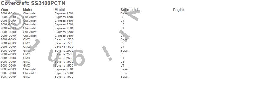 Below is an abbreviated list of applications for the SeatSaver Custom Seat Cover.Express 1500, Express 2500, Express 3500, Savana 1500, Savana 2500, Savana 3500, Chevrolet, GMC, 2009, 2008, 2007