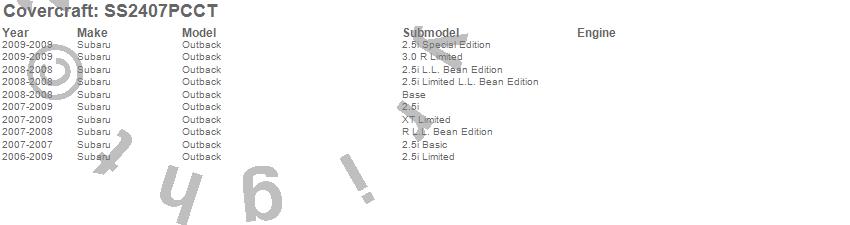 Below is an abbreviated list of applications for the SeatSaver Custom Seat Cover.Outback, Subaru, 2009, 2008, 2007, 2006