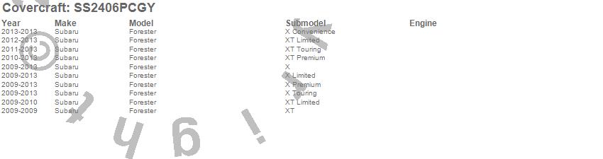 Below is an abbreviated list of applications for the SeatSaver Custom Seat Cover.Forester, Subaru, 2013, 2012, 2011, 2010, 2009