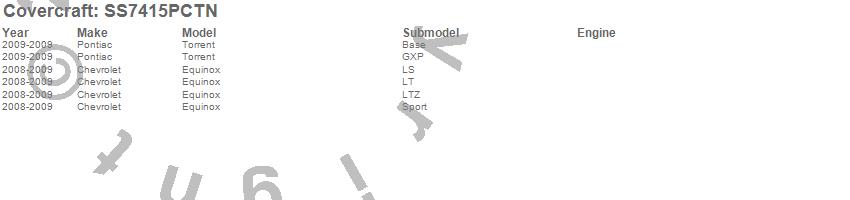 Below is an abbreviated list of applications for the SeatSaver Custom Seat Cover.Equinox, Torrent, Chevrolet, Pontiac, 2009, 2008
