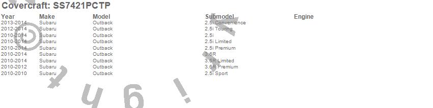 Below is an abbreviated list of applications for the SeatSaver Custom Seat Cover.Outback, Subaru, 2014, 2013, 2012, 2011, 2010