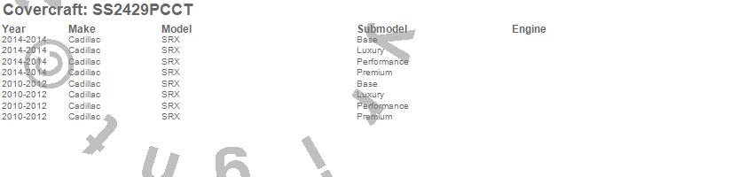 Below is an abbreviated list of applications for the SeatSaver Custom Seat Cover.SRX, Cadillac, 2014, 2012, 2011, 2010