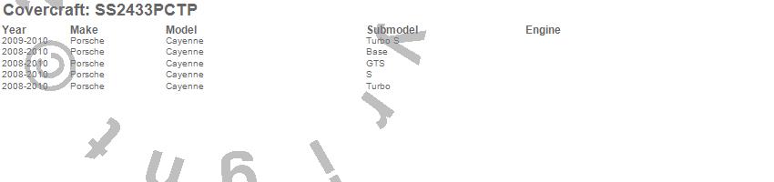 Below is an abbreviated list of applications for the SeatSaver Custom Seat Cover.Cayenne, Porsche, 2010, 2009, 2008