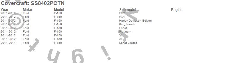 Below is an abbreviated list of applications for the SeatSaver Custom Seat Cover.F-150, Ford, 2012, 2011