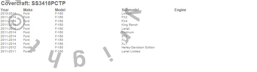 Below is an abbreviated list of applications for the SeatSaver Custom Seat Cover.F-150, Ford, 2014, 2013, 2012, 2011