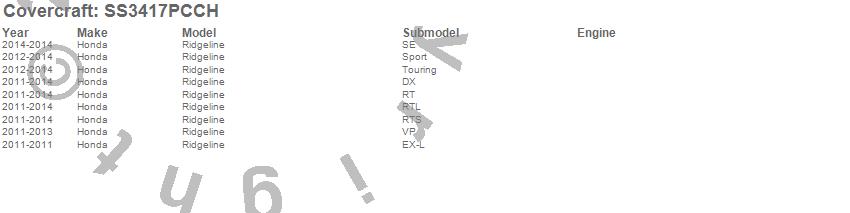 Below is an abbreviated list of applications for the SeatSaver Custom Seat Cover.Ridgeline, Honda, 2014, 2013, 2012, 2011