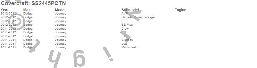 Below is an abbreviated list of applications for the SeatSaver Custom Seat Cover.Journey, Dodge, 2012, 2011