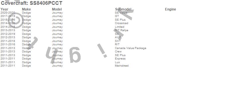 Below is an abbreviated list of applications for the SeatSaver Custom Seat Cover.Journey, Dodge, 2020, 2019, 2018, 2017, 2016, 2015, 2014, 2013, 2012, 2011