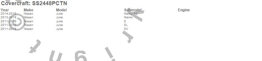 Below is an abbreviated list of applications for the SeatSaver Custom Seat Cover.Juke, Nissan, 2016, 2015, 2014, 2013, 2012, 2011