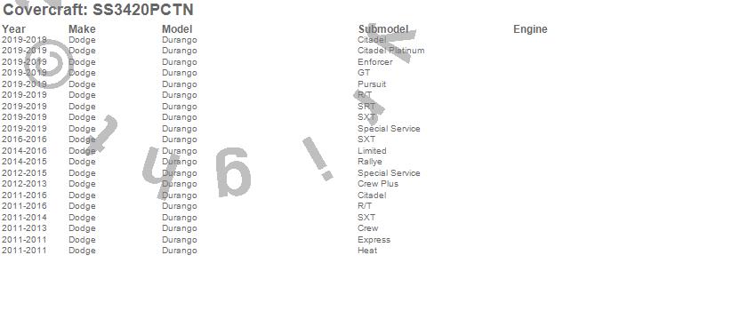 Below is an abbreviated list of applications for the SeatSaver Custom Seat Cover.Durango, Dodge, 2019, 2016, 2015, 2014, 2013, 2012, 2011