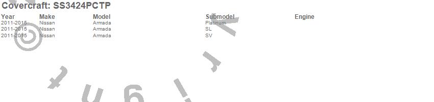 Below is an abbreviated list of applications for the SeatSaver Custom Seat Cover.Armada, Nissan, 2015, 2014, 2013, 2012, 2011