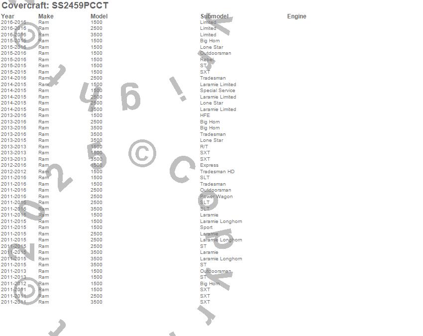 Below is an abbreviated list of applications for the SeatSaver Custom Seat Cover.1500, 2500, 3500, Ram, 2016, 2015, 2014, 2013, 2012, 2011