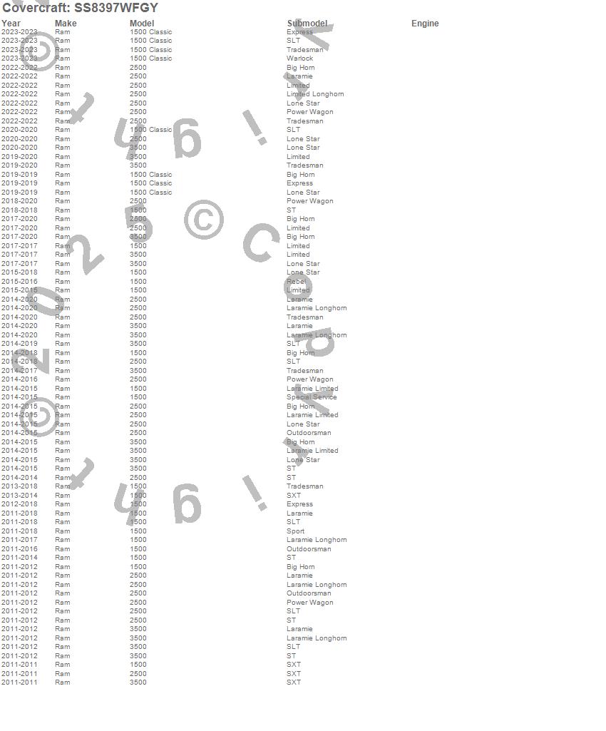 Below is an abbreviated list of applications for the SeatSaver Custom Seat Cover.1500, 1500 Classic, 2500, 3500, Ram, 2025, 2024, 2023, 2022, 2020, 2019, 2018, 2017, 2016, 2015, 2014, 2013, 2012, 2011