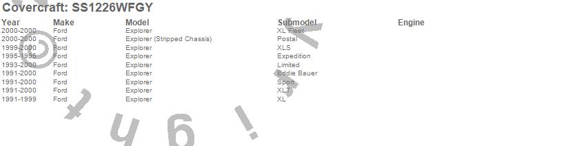 Below is an abbreviated list of applications for the SeatSaver Custom Seat Cover.Explorer, Explorer (Stripped Chassis), Ford, 2000, 1999, 1998, 1997, 1996, 1995, 1994, 1993, 1992, 1991