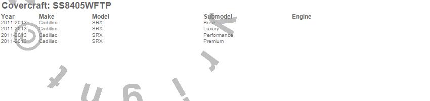Below is an abbreviated list of applications for the SeatSaver Custom Seat Cover.SRX, Cadillac, 2013, 2012, 2011