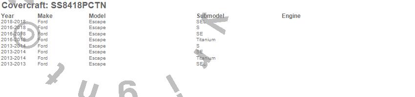Below is an abbreviated list of applications for the SeatSaver Custom Seat Cover.Escape, Ford, 2018, 2017, 2016, 2014, 2013