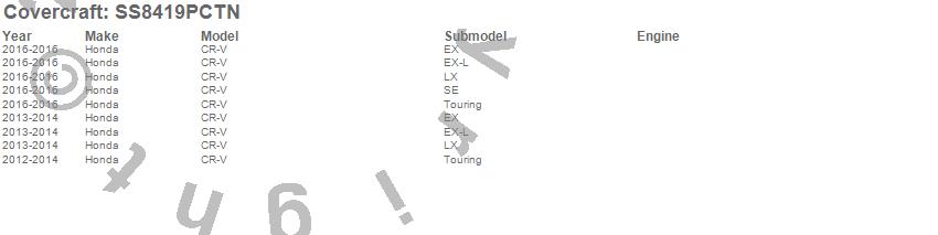 Below is an abbreviated list of applications for the SeatSaver Custom Seat Cover.CR-V, Honda, 2016, 2014, 2013, 2012
