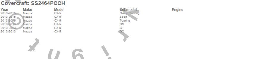 Below is an abbreviated list of applications for the SeatSaver Custom Seat Cover.CX-5, Mazda, 2015, 2014, 2013