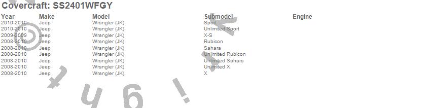 Below is an abbreviated list of applications for the SeatSaver Custom Seat Cover.Wrangler (JK), Jeep, 2010, 2009, 2008