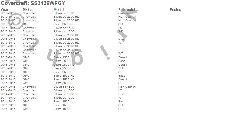 Below is an abbreviated list of applications for the SeatSaver Custom Seat Cover.Sierra 1500, Sierra 2500 HD, Sierra 3500 HD, Silverado 1500, Silverado 2500 HD, Silverado 3500 HD, Chevrolet, GMC, 2016, 2015, 2014