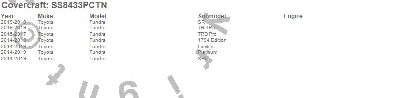 Below is an abbreviated list of applications for the SeatSaver Custom Seat Cover.Tundra, Toyota, 2019, 2018, 2017, 2016, 2015, 2014