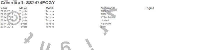Below is an abbreviated list of applications for the SeatSaver Custom Seat Cover.Tundra, Toyota, 2019, 2018, 2017, 2016, 2015, 2014