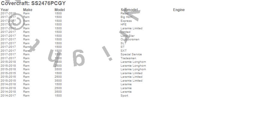 Below is an abbreviated list of applications for the SeatSaver Custom Seat Cover.1500, 2500, 3500, Ram, 2018, 2017, 2016, 2015, 2014