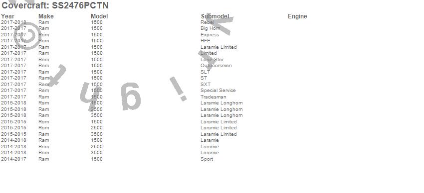 Below is an abbreviated list of applications for the SeatSaver Custom Seat Cover.1500, 2500, 3500, Ram, 2018, 2017, 2016, 2015, 2014