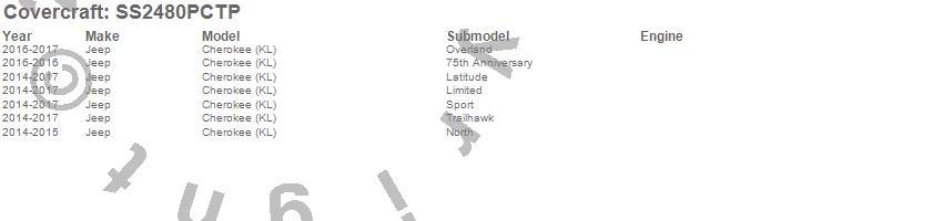 Below is an abbreviated list of applications for the SeatSaver Custom Seat Cover.Cherokee (KL), Jeep, 2017, 2016, 2015, 2014
