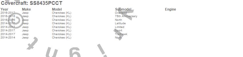 Below is an abbreviated list of applications for the SeatSaver Custom Seat Cover.Cherokee (KL), Jeep, 2017, 2016, 2015, 2014