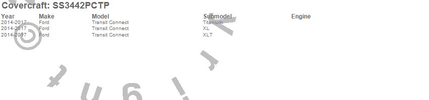 Below is an abbreviated list of applications for the SeatSaver Custom Seat Cover.Transit Connect, Ford, 2017, 2016, 2015, 2014