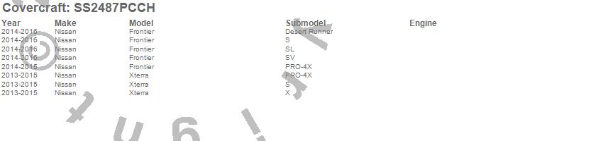 Below is an abbreviated list of applications for the SeatSaver Custom Seat Cover.Frontier, Xterra, Nissan, 2016, 2015, 2014, 2013