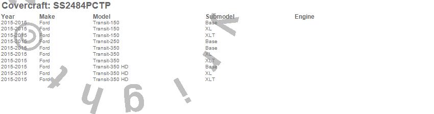 Below is an abbreviated list of applications for the SeatSaver Custom Seat Cover.Transit-150, Transit-250, Transit-350, Transit-350 HD, Ford, 2015