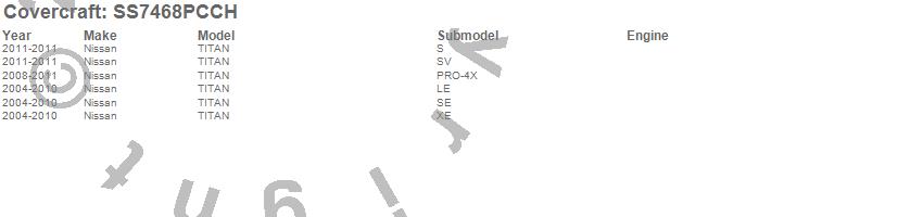 Below is an abbreviated list of applications for the SeatSaver Custom Seat Cover.TITAN, Nissan, 2011, 2010, 2009, 2008, 2007, 2006, 2005, 2004