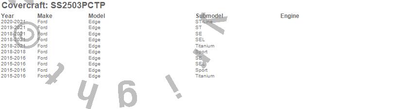 Below is an abbreviated list of applications for the SeatSaver Custom Seat Cover.Edge, Ford, 2024, 2021, 2020, 2019, 2018, 2016, 2015
