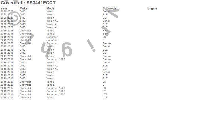 Below is an abbreviated list of applications for the SeatSaver Custom Seat Cover.Suburban, Suburban 1500, Tahoe, Yukon, Yukon XL, Chevrolet, GMC, 2020, 2019, 2018, 2017, 2016, 2015