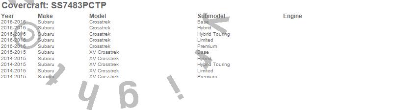 Below is an abbreviated list of applications for the SeatSaver Custom Seat Cover.Crosstrek, XV Crosstrek, Subaru, 2016, 2015, 2014