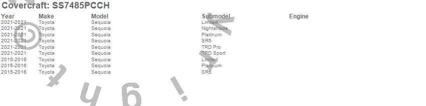 Below is an abbreviated list of applications for the SeatSaver Custom Seat Cover.Sequoia, Toyota, 2021, 2016, 2015
