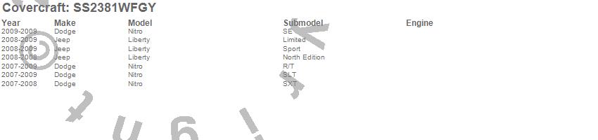 Below is an abbreviated list of applications for the SeatSaver Custom Seat Cover.Liberty, Nitro, Dodge, Jeep, 2009, 2008, 2007