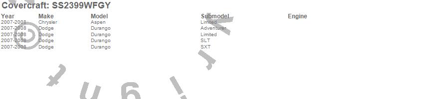 Below is an abbreviated list of applications for the SeatSaver Custom Seat Cover.Aspen, Durango, Chrysler, Dodge, 2008, 2007
