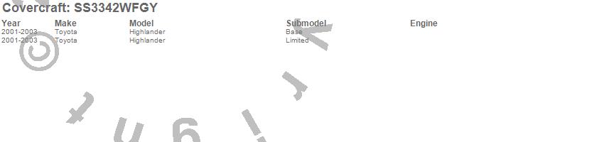 Below is an abbreviated list of applications for the SeatSaver Custom Seat Cover.Highlander, Toyota, 2003, 2002, 2001
