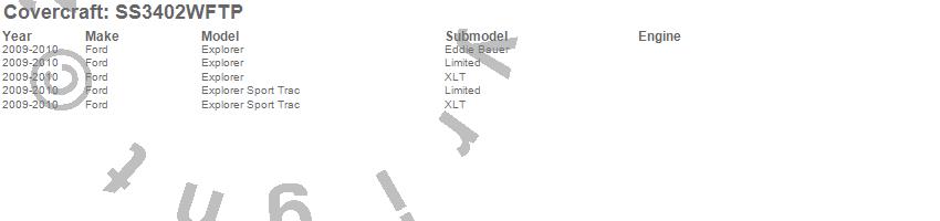 Below is an abbreviated list of applications for the SeatSaver Custom Seat Cover.Explorer, Explorer Sport Trac, Ford, 2010, 2009