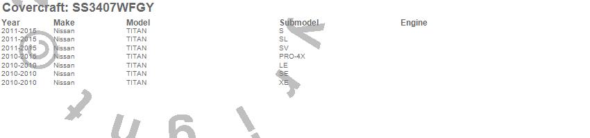 Below is an abbreviated list of applications for the SeatSaver Custom Seat Cover.TITAN, Nissan, 2015, 2014, 2013, 2012, 2011, 2010