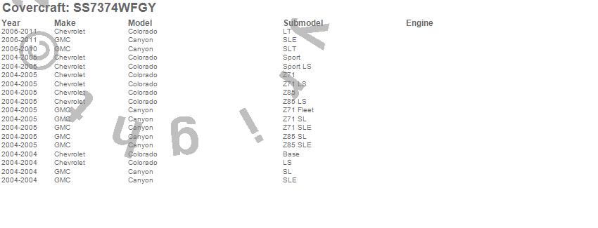 Below is an abbreviated list of applications for the SeatSaver Custom Seat Cover.Canyon, Colorado, Chevrolet, GMC, 2011, 2010, 2009, 2008, 2007, 2006, 2005, 2004