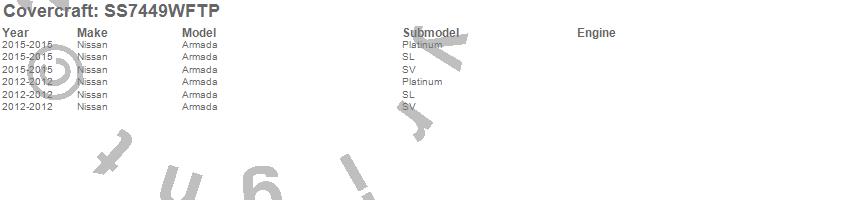 Below is an abbreviated list of applications for the SeatSaver Custom Seat Cover.Armada, Nissan, 2015, 2012