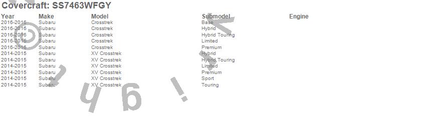 Below is an abbreviated list of applications for the SeatSaver Custom Seat Cover.Crosstrek, XV Crosstrek, Subaru, 2016, 2015, 2014
