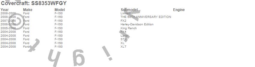 Below is an abbreviated list of applications for the SeatSaver Custom Seat Cover.F-150, Ford, 2008, 2007, 2006, 2005, 2004