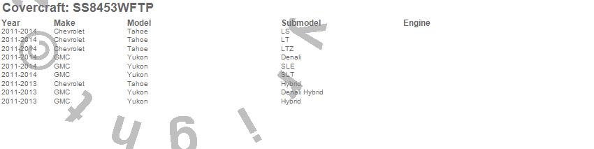 Below is an abbreviated list of applications for the SeatSaver Custom Seat Cover.Tahoe, Yukon, Chevrolet, GMC, 2014, 2013, 2012, 2011