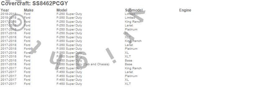 Below is an abbreviated list of applications for the SeatSaver Custom Seat Cover.F-250 Super Duty, F-350 Super Duty, F-450 Super Duty, F-550 Super Duty, Ford, 2018, 2017